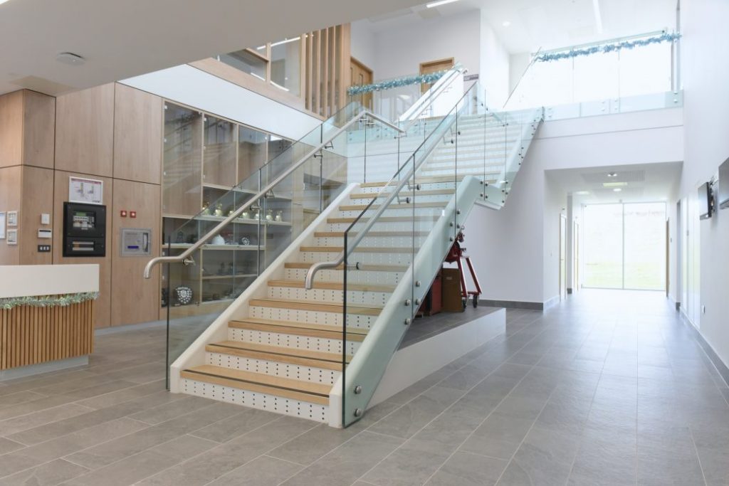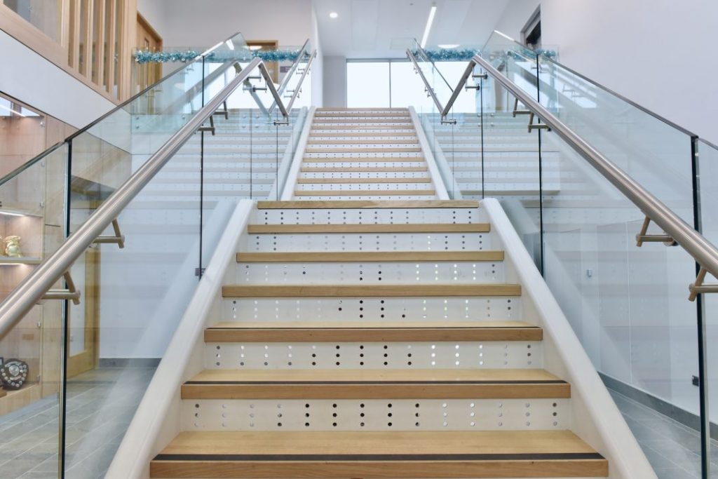 Peter Martin Engineering Ltd was appointed to TUS Athlone Campus to design, fabricate and fit the balustrades and cladding to 2No. feature Stairs, Social Stairs, and Landing voids, including SS automation bollards to the exterior of the building.